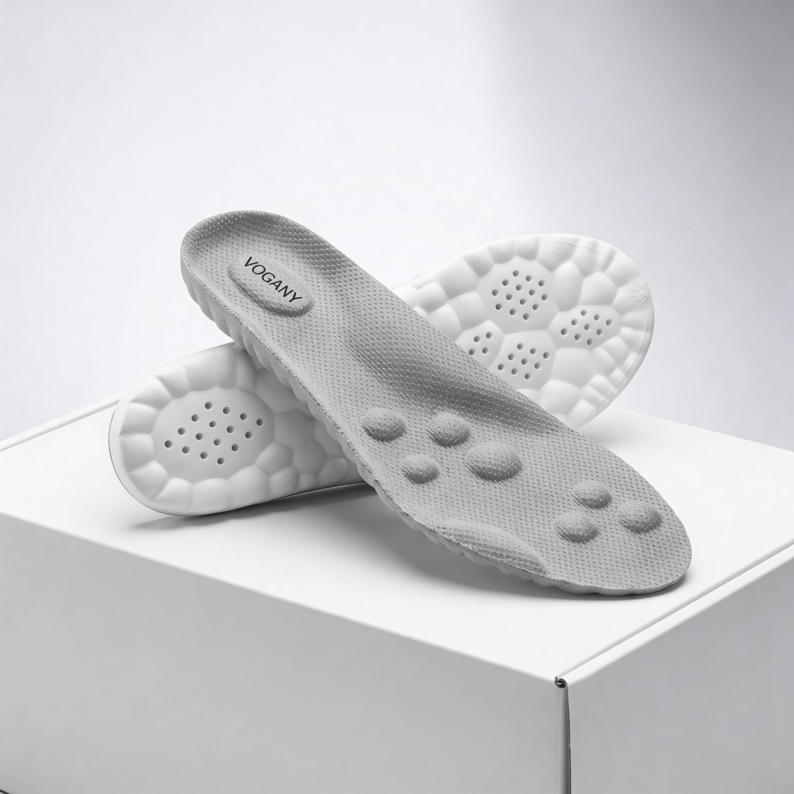 Die Einlagen Vogany helfen, Ihren Fuß neu auszurichten, den Druck auf empfindliche Stellen zu reduzieren und Stöße bei jedem Schritt zu absorbieren, damit Sie sich natürlich und bequem bewegen können, Tag für Tag.
