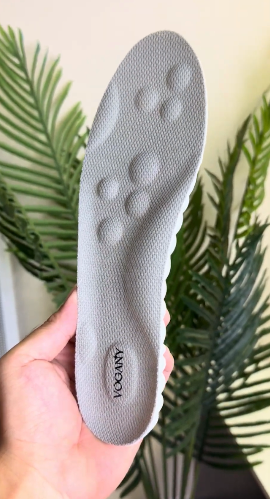 インソールVoganyは負荷を均等に分配し、痛みを効果的に和らげます。その人間工学に基づいたデザインは足の自然な動きをサポートし、かかとや足の裏などの敏感な部分に焦点を当てたインサートが、あたかも指圧のように働きます。